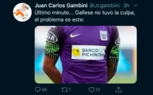 “Último minuto… Gallese no tuvo la culpa, el problema es este”, escribió el periodista junto a una imagen de la indumentaria del arquero de Alianza Lima.