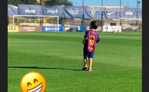 Pese a su injusta suplencia, el delantero se muestra animado vistiendo los colores azul y oro y parece haberle transmitido la pasión a su pequeño hijo.