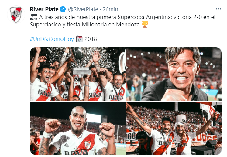 Pasa que recordó que hace 3 años, los de Núñez le ganaban la Supercopa Argentina justamente al eterno rival, en un año que sería épico para los del Muñeco.