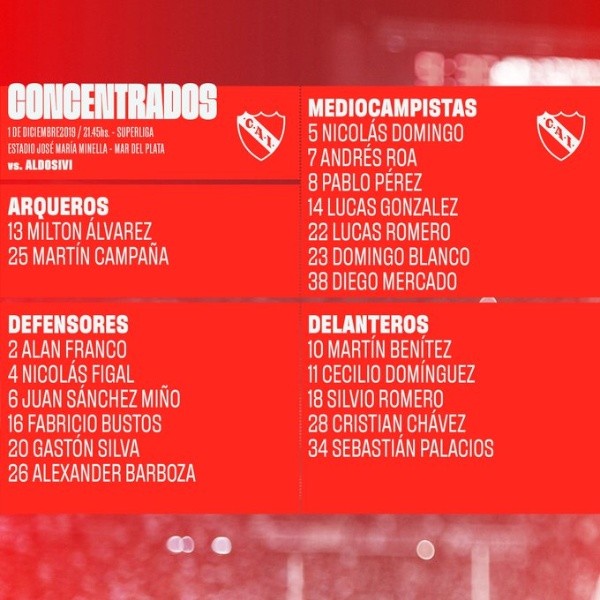 El partido de Aldosivi vs. Independiente por la fecha 15 de la Superliga será este domingo 1 de diciembre en el Estadio José María Minella.
