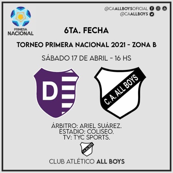 All Boys, por su lado, tiene un mejor presente. El Albo acumula una racha de tres victorias de manera consecutiva y tratará de sumar una vez más para poderse quedar en los primeros lugares de su zona.