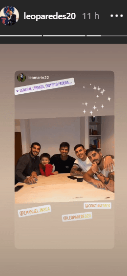 Es que Paredes compartió una comida con otros tres ex-Xeneizez: Emanuel Insua, Leandro Marin y Pichi Erbes.