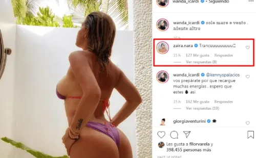 La foto recibió muchos likes, pero sobresalió el mensaje de su hermana y compañera de vida, Zaira Nara, quien le escribió: “Trancuuuuuuuuu”.