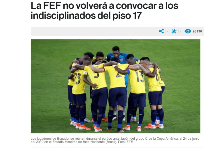 Quienes quedaron marcados ya como “los del piso 17” recibirán un castigo acorde a sus actos, según informaron desde la Federación Ecuatoriana de Fútbol.