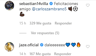 Tras ello, muchas figuras se manifestaron. Jaze, el freestyler más famoso del país, por ejemplo, escribió “dalee” y corazoncitos azules. Del mundo del fútbol, su compañero Sebastián Villa comentó: “Felicitaciones amigo”.