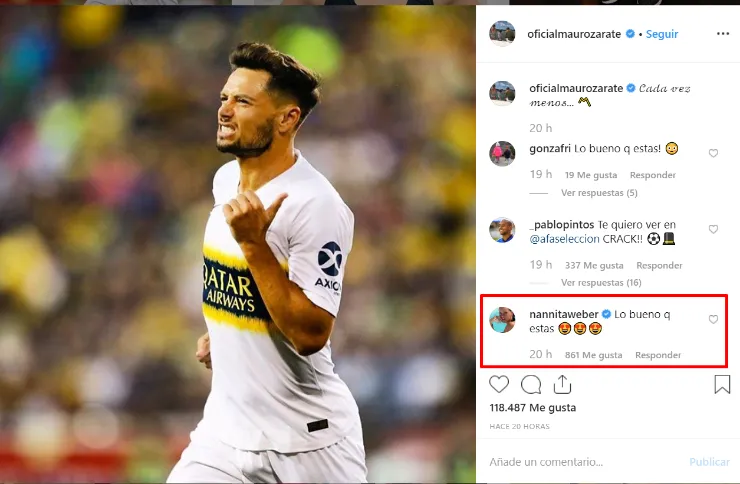 Natalie Weber, su mujer, no dudó en dejarle un mensajito ‘hot’ apenas subió la foto. “Lo bueno que estás”, escribió. Claro, se llevó los ‘me gusta’ de todo el Mundo Boca.