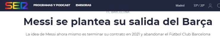 Según informó el periodista Manuel Carreño, el Diez y capitán del primer equipo azulgrana paró las negociaciones de renovación de su contrato, que vence el 30 de junio del 2021, considerando una posible salida del club. Realmente, una verdadera bomba por donde se lo mire y que hace temblar a toda la institución.