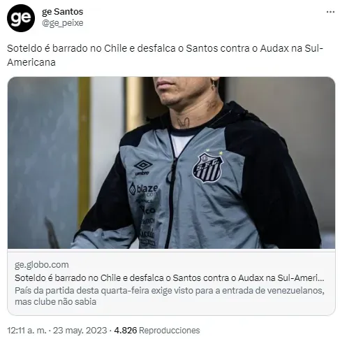 Santos ha llegado a suelo chileno para su partido ante Audax Italiano por la fase de grupos de la Copa Sudamericana. El club tuvo un contratiempo en el aeropuerto y a Yeferson Soteldo casi le niegan la entrada al país.