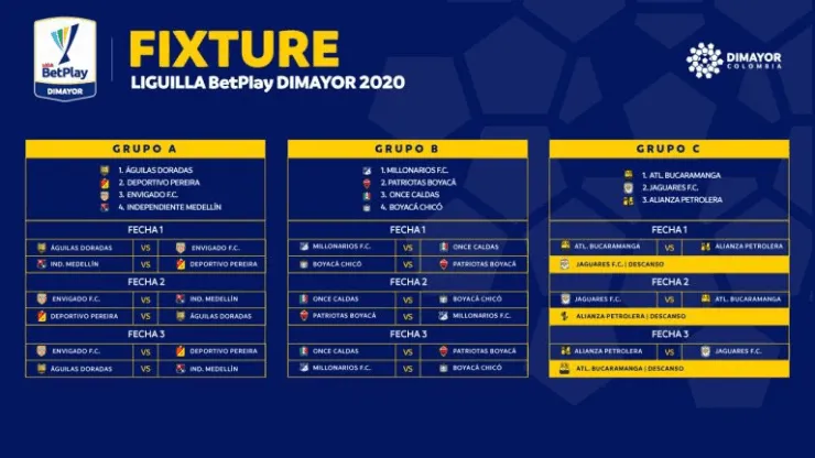 Con los tres grupos organizados, se decidió que la designación de localía para los equipos iba a tener beneficio para los clubes mejores clasificados en la Liga BetPlay 2020. Eso quiere decir que Águilas Doradas, Millonarios, Once Caldas y Envigado podrán jugar DOS de sus TRESpartidosen casa.