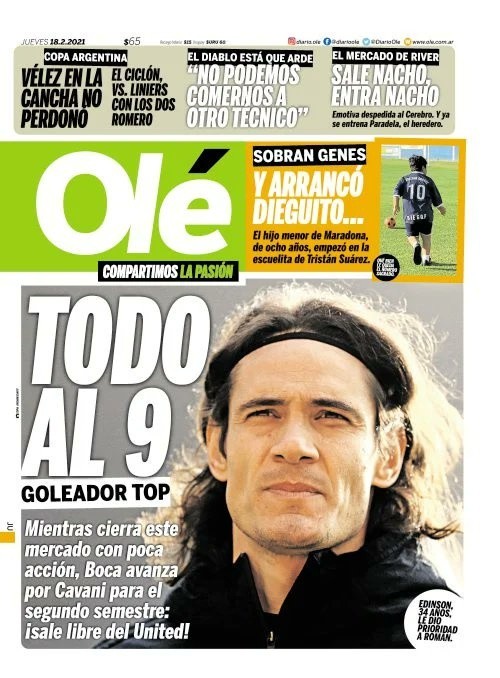 Este jueves,Diario Olédespertó a los hinchas de Boca con una portada que los ilusiona: “Mientras cierra este mercado de pases, Boca avanza por Cavani para el segundo semestre: ¡sale libre del United!”.