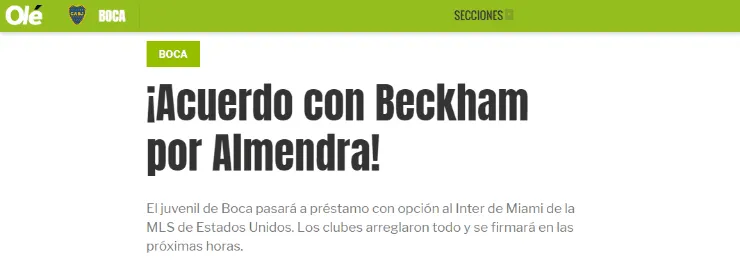 Agustín Almendrase irá a préstamo con opción de compra rumbo alInter de Miami. Sí, el equipo del queDavid Beckham es dueño.