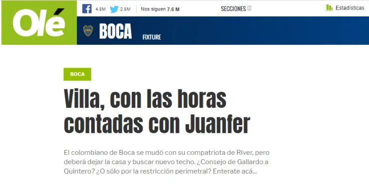 Lastimosamente, el problema que esta viviendo Sebastián Villa en Argentina tuvo un efecto colateral que también salpicó a Juan Fernando Quintero. Tras todo el escándalo, la prensa filtró el paradero del extremo de Boca y se supo que esta viviendo con el creativo de River Plate.