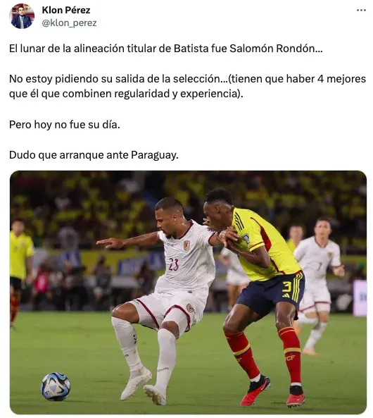 En la plataforma ‘X’, conocida anteriormente como Twitter, se ubicó el nombre de Rondón como uno de los principales culpables de la caída en Barranquilla.