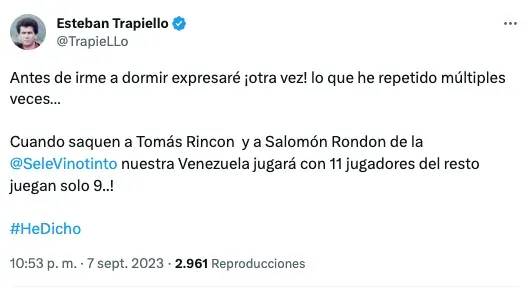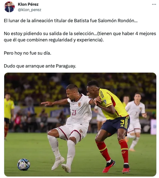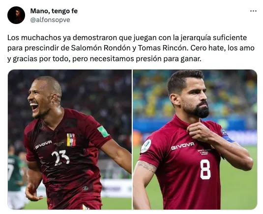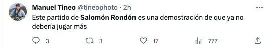 “No debería jugar más”, “intrascendente y sobrevalorado” y “el equipo necesita recambio” fueron parte de los comentarios contra Salomón. Inclusive también se mencionó a Tomás Rincón como otro de ls históricos que deberían dar un paso al costado.