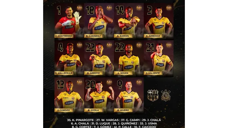 Para enfrentar a Barcelona SC, así sale el 'Timao': Souza, Matheuzinho, Henrique, Tchoca, Farías, Bidon, Santana, Torres, Garro, Alberto y Depay.