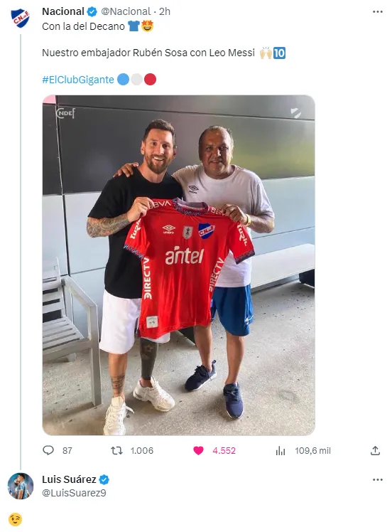 Se trata de Nacional de Montevideo, que enfrentará a Boca Juniors en la capital uruguaya este miércoles. Edinson Cavani revoluciona al Xeneize con su fichaje, pero Messi dejó como locos a los fanáticos del Bolso por la imagen que comparte con Rubén Sosa. Luis Suárez, con un guiño, avaló la foto.
