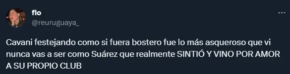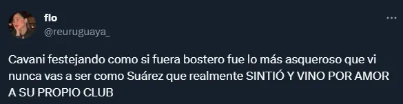 Algunos hinchas de Nacional criticaron duramente a Edinson Cavani por sus festejos con Boca, alegando que no quiso volver al club uruguayo. Hubo insultos de algunos usuarios, mientras que otros hasta lo compararon con Luis Suárez, quien sí volvió al conjunto tricolor (ahora en Gremio).