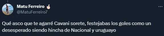Las opiniones por el Matador también generaron debate, ya que otros hinchas cuestionaron a los críticos. Explicaron que el jugador no tiene relación alguna con Nacional, ya que recuerdan que jugó para Danubio en Uruguay.