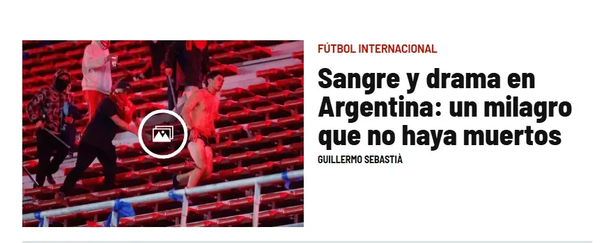 “Batalla campal en Argentina. Club Atlético Independiente y Universidad de Chile tuvo que suspenderse por los graves incidentes entre aficionados de ambos equipos. Dejaron un saldo de 10 heridos graves y cerca de 90 detenidos de momento”, titular del Diario MARCA en España sobre lo ocurrido. De momento se espera por más comunicados oficiales de las autoridades. Se busca a los responsables de una jornada negra para la historia del fútbol sudamericano.