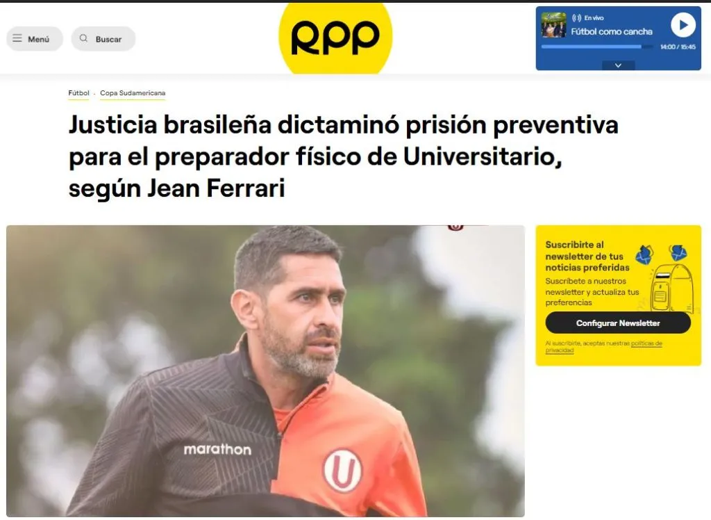 RPP Noticias, después de todo lo conocido en las últimas horas, confirmó el lamentable suceso. En Brasil el racismo tiene causas directas, sanciones que pueden verse envueltas con encarcelamiento. Lo titula de esta manera el medio de comunicación: “Justicia brasileña dictaminó prisión preventiva para el preparador físico de Universitario, según Jean Ferrari”.