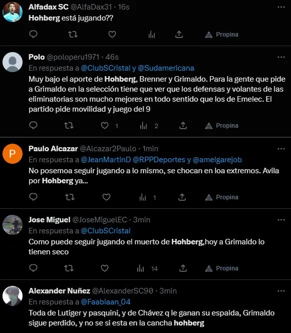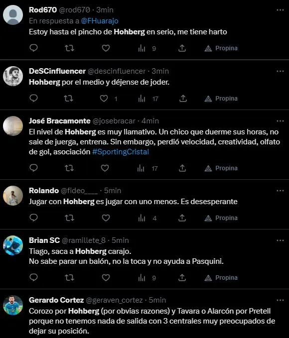 Ahora, no han pasado mayores sobresaltos atrás los rimenses y esa es la mejor noticia de todas, por ahora. El otro lado de la novela es sin duda el jugador de Sporting Cristal: Alejandro Hohberg. El delantero es el más criticado por todos en las redes sociales.