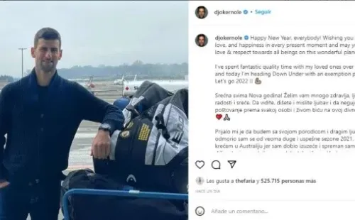 Lo cierto es que antes del torneo que abre la temporada tenística de 2022, el vigente número uno publicó en su cuenta de Instagram: “pasé un tiempo de calidad fantástico con mis seres queridos durante las vacaciones y hoy me dirijo a Australia con un permiso de exención”.