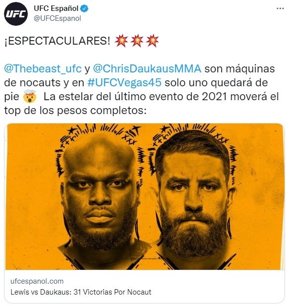 El combateDerrick Lewis vs. Chris Daukaus se llevará a cabo HOY,sábado 18 de diciembre, en el UFC Apex de Las Vegas, por la nueva edición delUFC Fight Night.