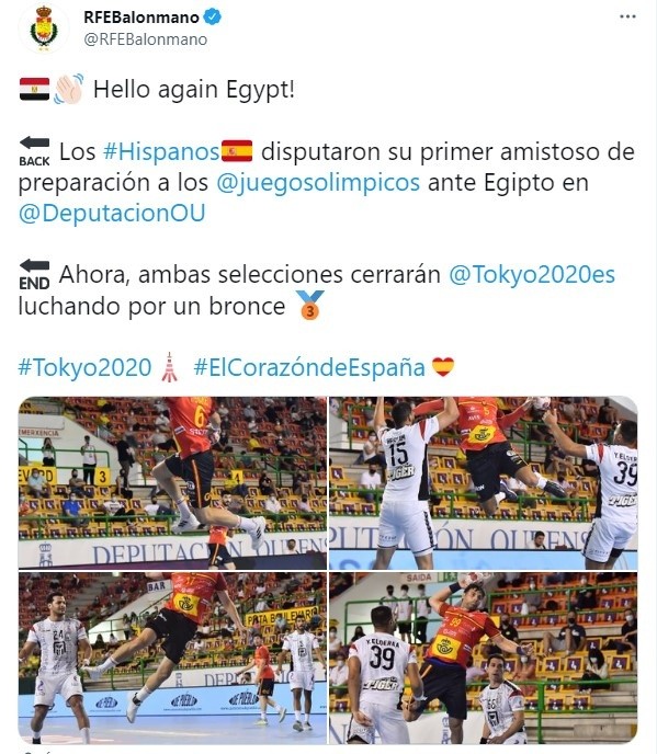 España y Egipto se enfrentarán en el duelo por la medalla de bronce del torneo de balonmano masculino de los Juegos Olímpicos Tokio 2020, este sábado 7 de agosto. El duelo por tendrá lugar en el Estadio Nacional de Yoyogi.