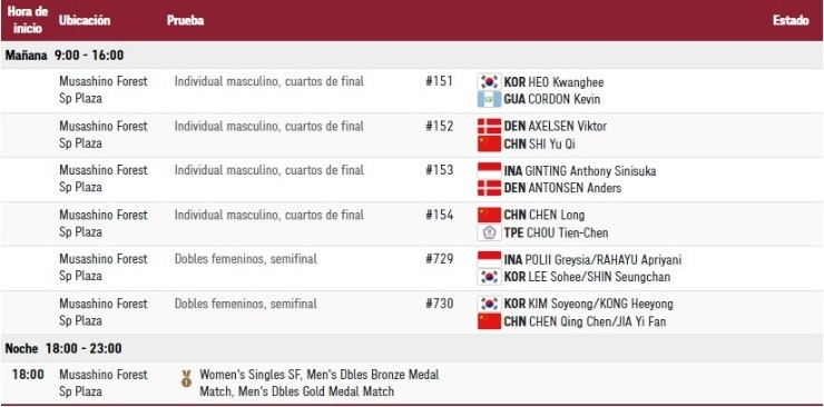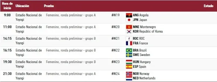 7:30, se disputa la tercera ronda del estiloStroke Play de Golf desde el Club de Campo de Kasumigaseki.