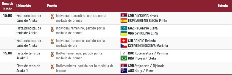 Ya es un nuevo día en lo que esTokio 2020, que todavía tiene otras ocho jornadas por delante, pero a partir de ahora empezamos a entrar en la mitad y, por ende, ingresando al tramo final de losJuegos Olímpicos. En esta oportunidad, el sábado 31 de juliocontará con un total de26 deportesque van a tener su disputa, de los cuales20 eventos permitirán ver a los tres medallistas correspondientes. El tenis posee tres partidos por la medalla de bronce, pero como la gran final será el domingo, ahí se contabilizarán como eventos que definan el podio de manera completa.