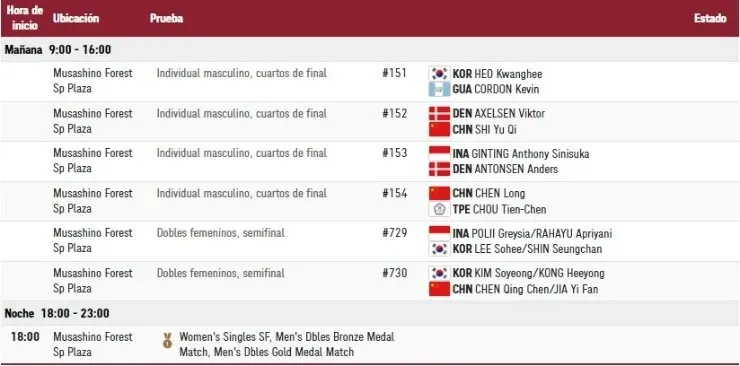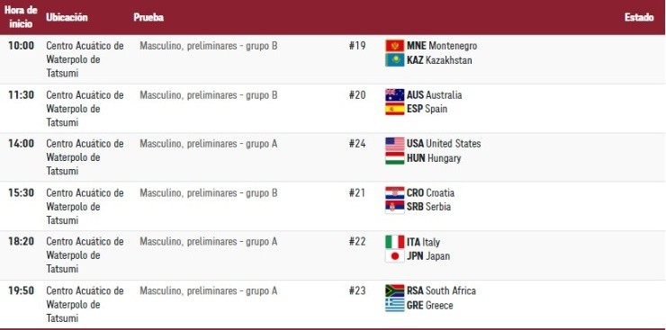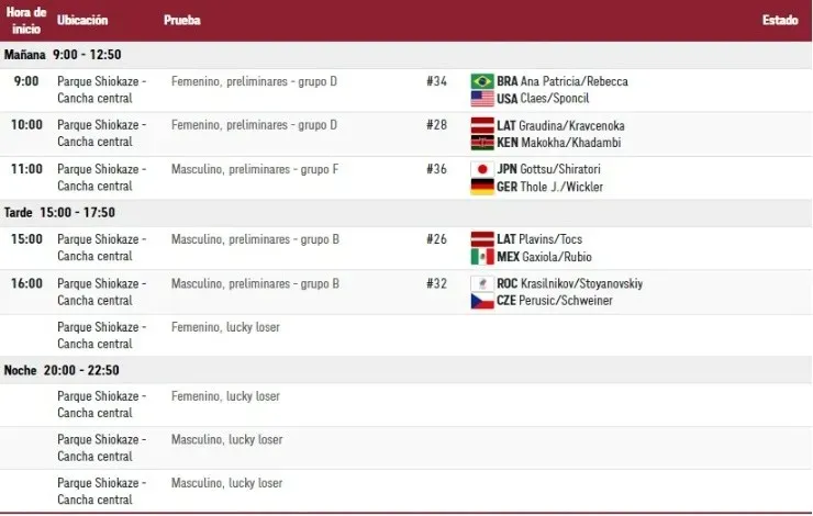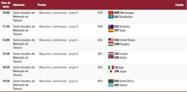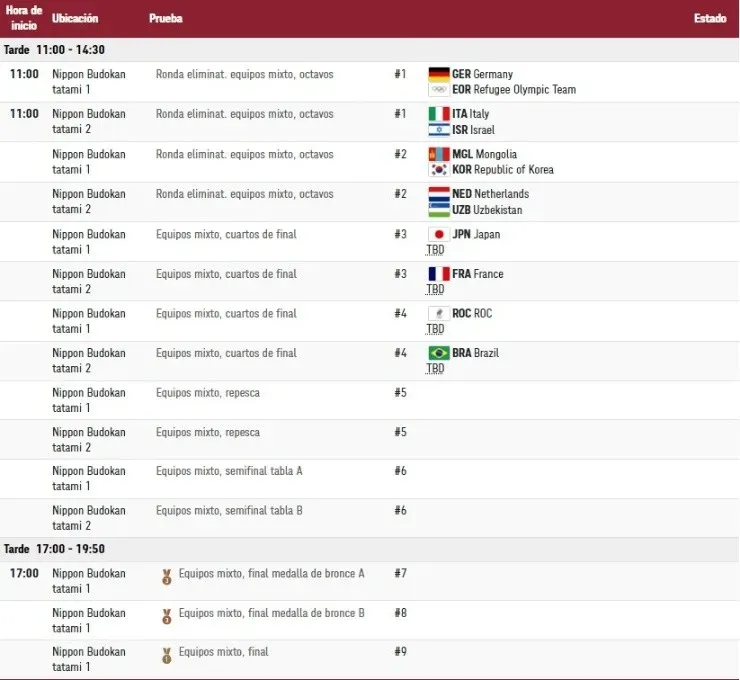 ¿Quiénes compiten en los Juegos OlímpicosTokio 2020 el sábado 31 de julio? (hora local de Tokio)