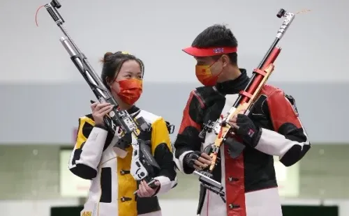 Qian Yang y Haoran Yang batieron el récord de la prueba de rifle 10 metros aire con 633.2 puntos y luego fueron campeones olímpicos.