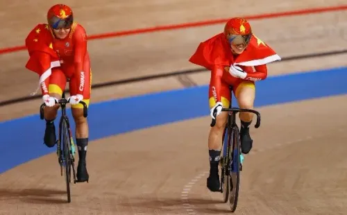 Shanju Bao y Tianshi Zhong quebraron el récord de la prueba de velocidad por equipos en su serie de primera ronda con un tiempo de 31.804 segundos. Luego se llevaron la dorada.