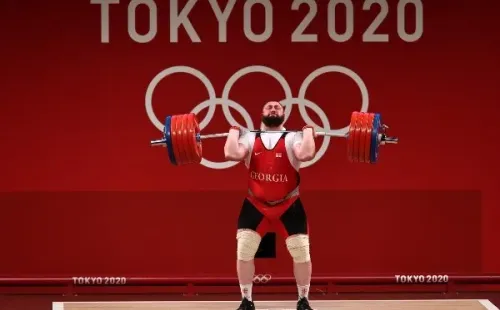 El georgiano comenzó a levantar último en la categoría de más de 109 kilos y quebró tres récords mundiales, además de llevarse la dorada. 223 en arrancada, 265 en envión y 488 en el total.