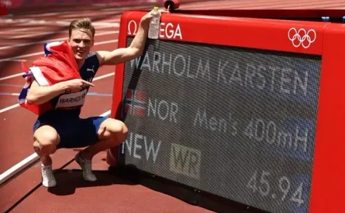 El escandinavo impuso récord mundialen 400 metros vallas con un tiempo de 45.94 segundos.