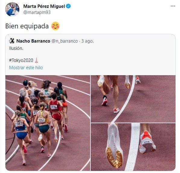 Pasamos conMarta Pérez, otra atleta que dice presente por primera vez dentro de la cita olímpica y donde buscará batallar para obtener un diploma o, por qué no, soñar con el podio. Su arribo a esta instancia se produjo por salir séptima en la primera ronda y luego quinta en la segunda serie por las semifinales, con el cual estampó su mejor marca personal de4m:01s.69.