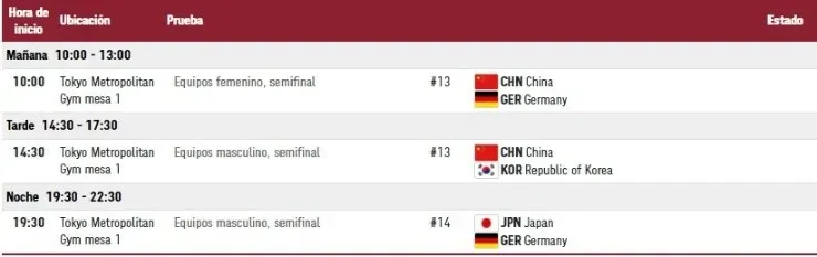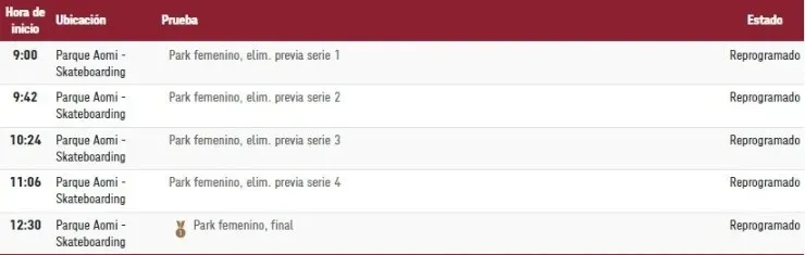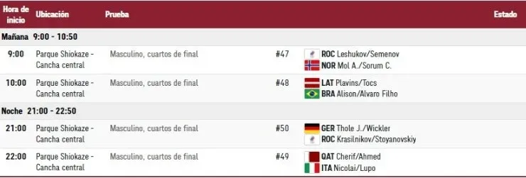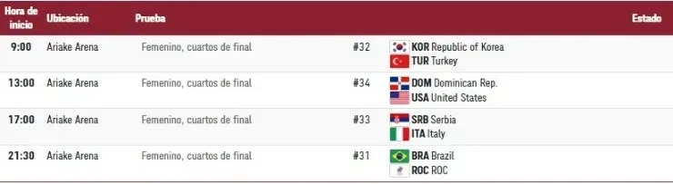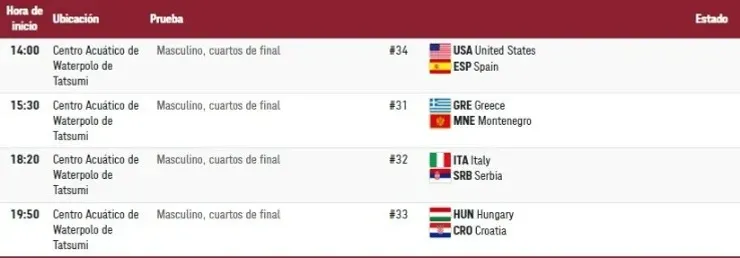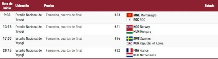 6:30, se corren los 10 kilómetros de aguas abiertas femenino donde se definirá el podio por las medallas en juego desde el Parque Marino de Odaiba.