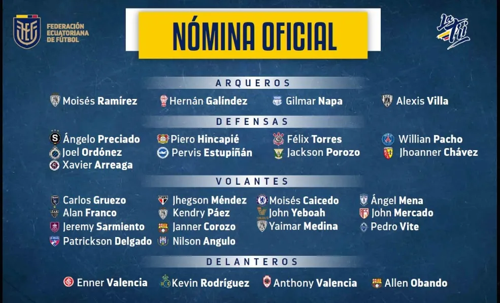 La Selección de Ecuador sigue teniendo cambios en la plantilla en esta doble fecha de Eliminatorias y es que hay novedades en la nómina local. Dos jugadores han sido incluidos para enfrentar a Selección de Perú en el Rodrigo Paz Delgado.