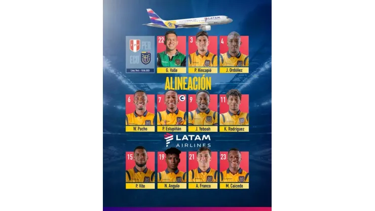 Este es el once de Perú para enfrentar a Ecuador: Pedro Gallese, Luis Advíncula, Renzo Garcés, Carlos Zambrano, Marcos López, Renato Tapia, André Carrillo, Edison Flores, Andy Polo, Kevin Quevedo y Paolo Guerrero.