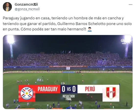 Aunque Paraguay tuvo todos los méritos para llevarse los tres puntos, los jugadores no estuvieron finos en el último toque e incluso el azar jugó su partido, con varias chances contra los palos. En redes sociales, sin embargo, Guillermo Barros Schelotto fue criticado con vehemencia por su planteo táctico.
