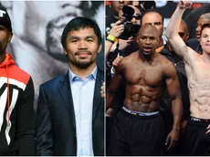 Manny Pacquiao and Timothy Bradley Jr. pose during their official weigh-in. Christian Petersen/Getty Images
