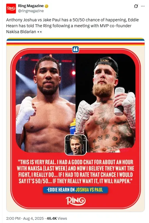 A potential boxing spectacle between Anthony Joshua and Jake Paul is quickly gaining traction. While the matchup may have seemed implausible just months ago, the current heavyweight landscape has made the unexpected look increasingly real.