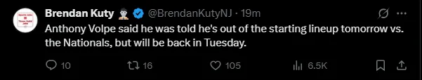 It’s worth noting that Volpe has been in this situation before, having been removed from the lineup for a period earlier in the season. That break gave him some room to breathe, and he returned in better form, but he unfortunately fell back into a slump. It’s probable that resting will help him once again.