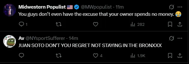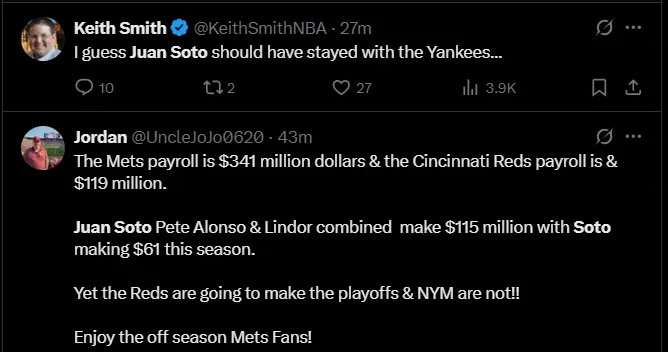 Regarding what the Mets might do during the offseason, social media user ‘Your Friend Kyle’ sarcastically commented that the Mets simply need to find “another guy like Soto” to improve next year, obviously poking fun at the fact that they failed to improve despite having him on a massive contract.