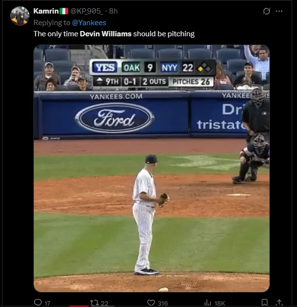 Fans, reporters, and others haven’t held back their criticism of Williams’ struggles this MLB year. Eric Hubbs of Barstool Sports was among those voicing frustration, stating, “Really, really bad Yankees loss. Just can’t get out of their own way. Devin Williams continues to be a massive problem.”
