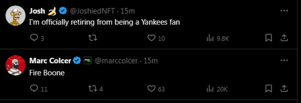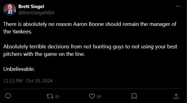 One of the main figures under scrutiny after the loss was Yankees manager Aaron Boone, with many calling for his dismissal. Several players also faced harsh criticism from fans on social media.