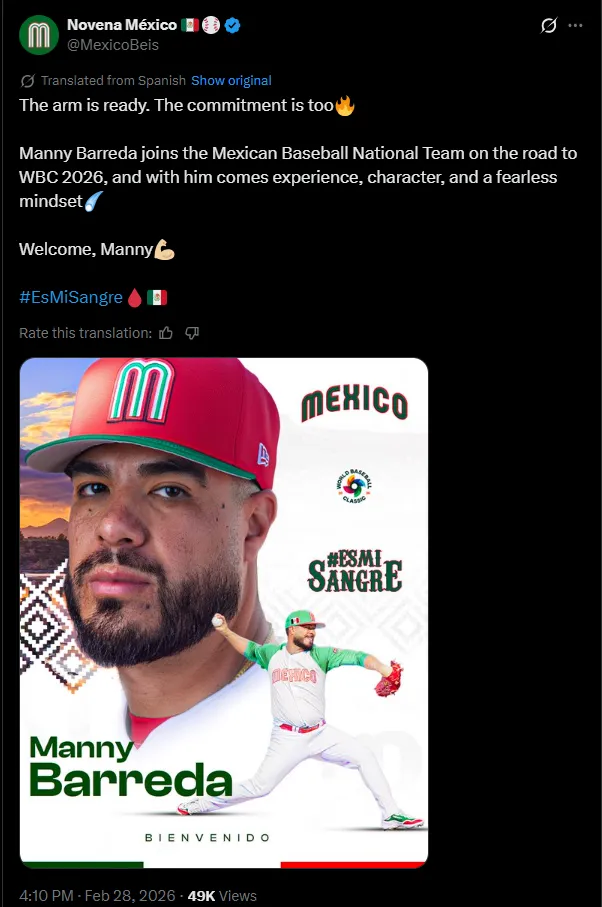 “Manny Barreda has been a workhorse of Mexican pitching for many years, but today he’s not the best option available. All the success to him and the national team, but competitively there are two or three pitchers from the LMB and LMP who deserved the call more,” ESPN Deportes’ Eitan Benezra wrote on X (@eitanbenezra).