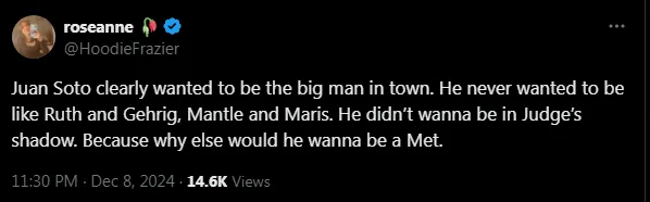 As expected, memes and reactions erupted online, especially from Yankees-leaning spaces. Some speculated that Soto wanted to avoid playing in Judge’s shadow and instead sought to be “the big man in town.”