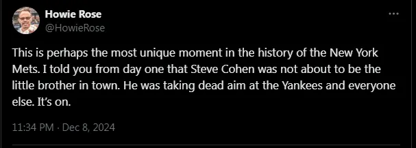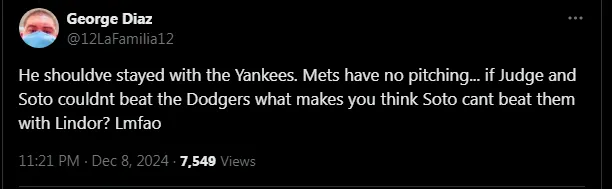 Some fans attributed his decision to frustration with his teammates’ errors during the Yankees’ 2024 World Series loss to the Dodgers. Others warned that the Mets’ pitching staff isn’t as strong as the Yankees’.