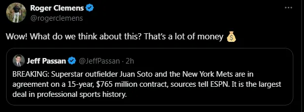 Former players also weighed in, with Roger Clemens remarking simply that the contract was “a lot of money.” Others speculated that playing in Queens might overshadow Soto’s career.